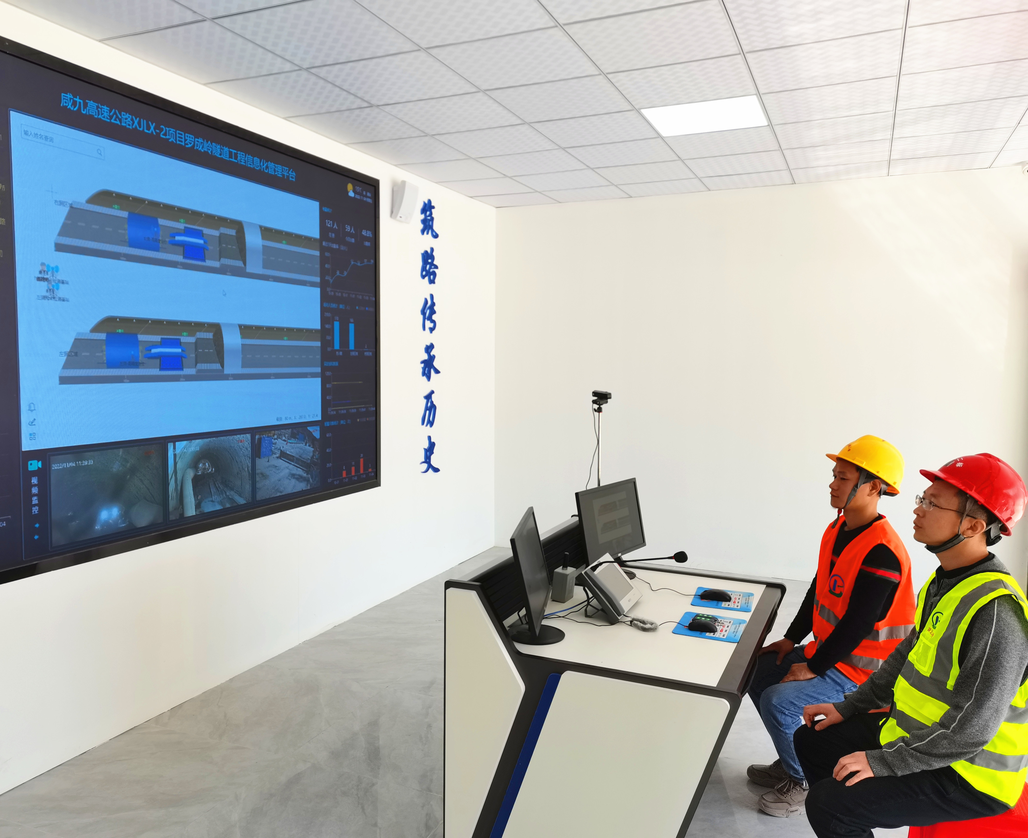 工程建设背后其中得益于现场“智慧大脑”的保驾护航。在隧道入口处,一个占地约10余平方米的信息化监控室内,工作人员通过信息化管理平台,可实时掌握隧道内现场人员分布信息和视频监控信息等。