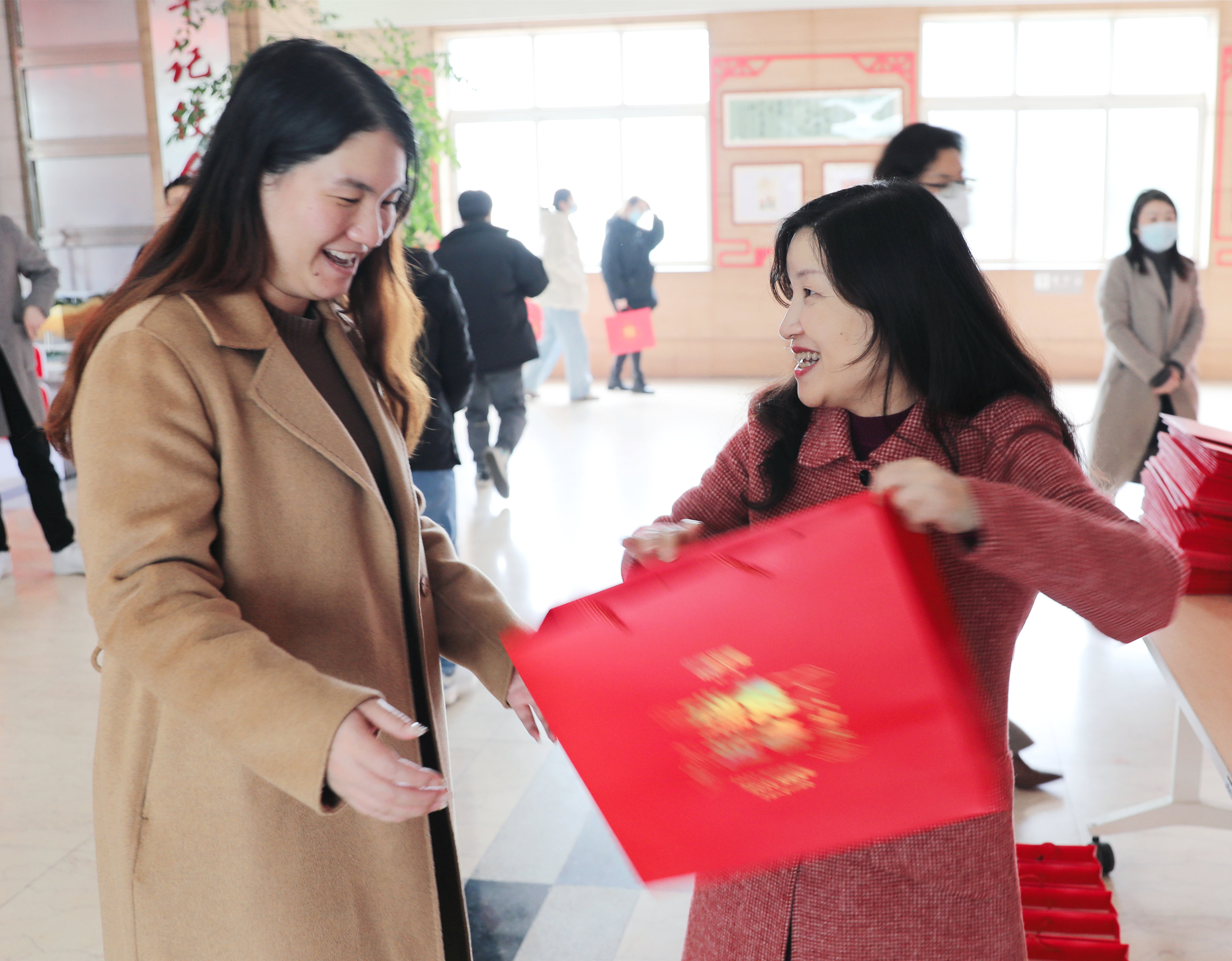 尽管室外阴雨绵绵,但福袋发放现场却热火朝天、喜气洋洋。小小的福袋,满满的温情,每份福袋不仅包含着春联、福字、窗花等节日礼品,更包含着一份份新春寄语和安全嘱托。建投集团、湖北路桥副总经理、工会主席王华瑞现场为广大员工发放福袋,送去节日祝福。员工们拿到福袋,喜悦之情溢于言表,对于这份浓浓的新春祝福,大家纷纷表示,一定会做好春节前工作,站好最后一班岗,并在新的一年里立足岗位,尽职尽责。