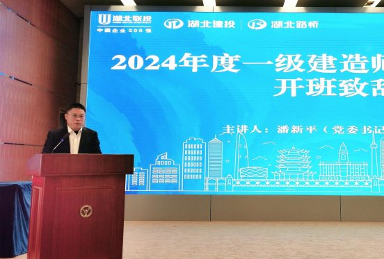 2月17日,湖北建投、湖北路桥2024年度一级建造师封闭式集训开班仪式顺利举行。公司党委书记、董事长潘新平出席开班仪式并致辞,党委委员、副总经理周望虎,党委委员、副总经理、工会主席王华瑞参加开班仪式。