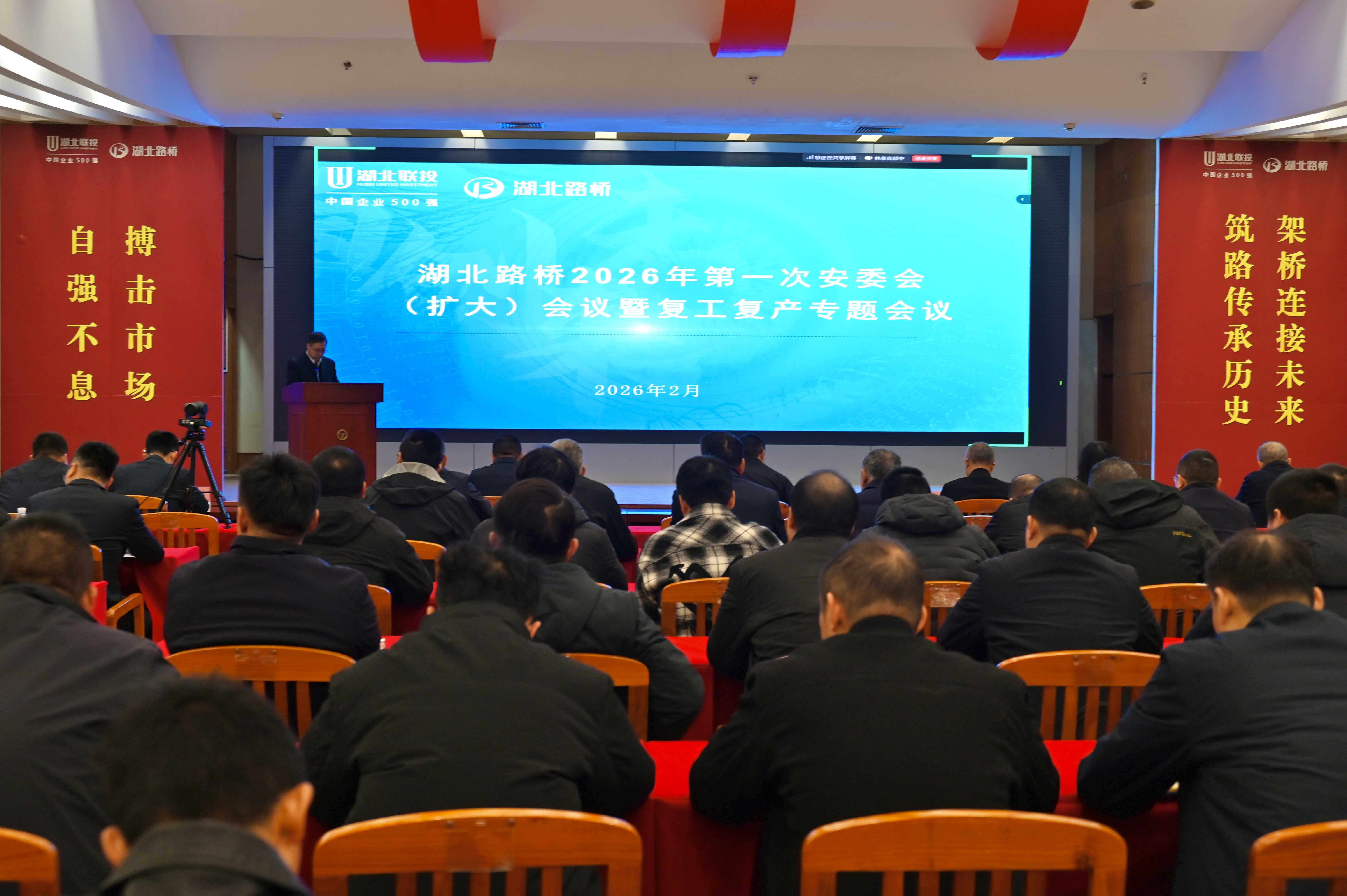 2月26日,湖北路桥召开2026年第一次安委会(扩大)会议暨复工复产安全生产专题会议。会议深入贯彻湖北联投2026年一季度“开门红、开门好”工作会议精神,动员全体干部职工收心归位、统一思想、压实责任,抓实复工复产安全生产工作,为公司年度安全发展筑牢基础。公司党委书记、董事长潘新平出席会议并讲话,党委副书记、总经理郑杰作复工复产动员并强调安全工作,党委委员、副总经理宁继康分析当前安全生产形势,部署2026年度安全环保重点工作及节后复工复产具体任务。