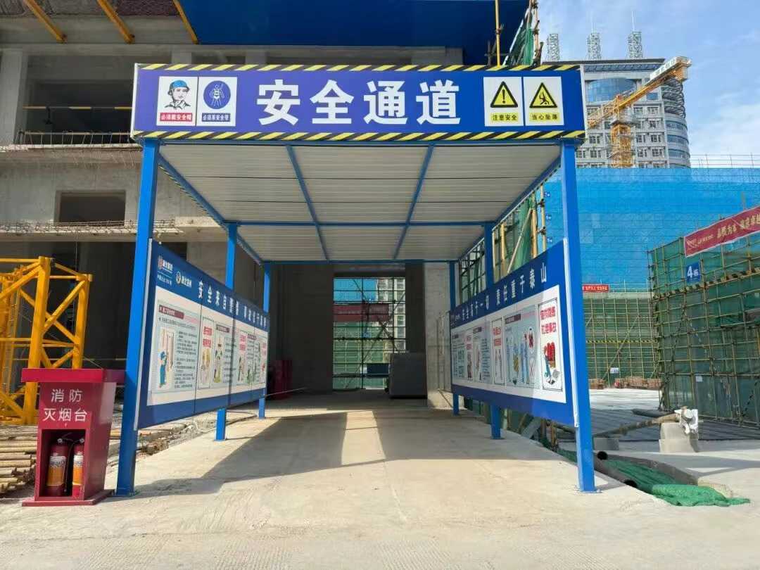 安全文明施工常抓不懈。如项目大门处设置劳务实名制通道;现场安全长廊方便工友安全通行;现场路面全硬化、建筑材料摆放有序;在进出大门的通道设置了隔音降噪洗车棚,降低运输车辆噪音且不带泥上路;围挡设置智能喷淋系统、现场有移动式雾炮降尘;电梯井和临边处均设置防护措施;现场样板展示区和安全体验区,各类安全体验、成品工序样板和实物技术交底赫然在列.....