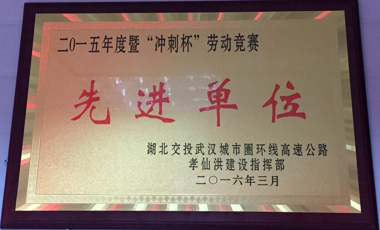 孝感段三标项目部在湖北路桥、孝仙洪指挥部的正确领导下,在社会各界的关心支持下,紧紧围绕年度工作目标,团结协作,克难奋进,荣获孝仙洪指挥部2015年度暨"冲刺杯"劳动竞赛"先进单位"荣誉称号。