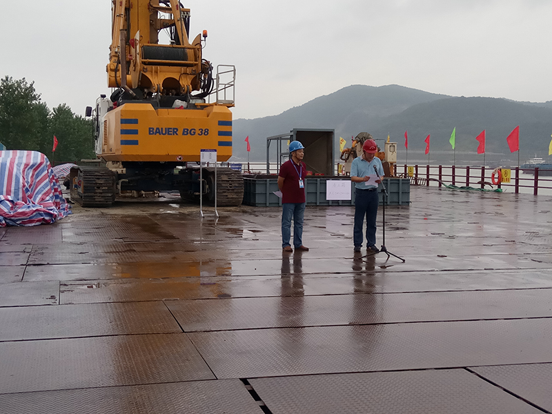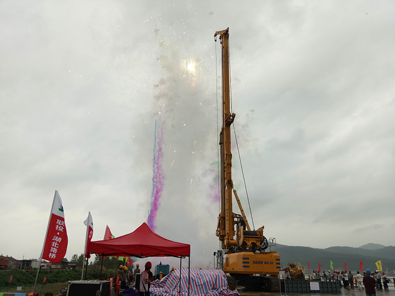 2016年9月28日上午10时,在响遏行云的礼炮声中,路桥集团武穴长江公路大桥WX-1标举行了主桥试桩工程12#墩的开钻仪式。开钻仪式由驻地办总监理工程师杨学祥主持,参加开钻仪式的有武穴市市委市政府、地方职能部门、省交投集团、武穴长江公路大桥指挥部及其他相关单位。