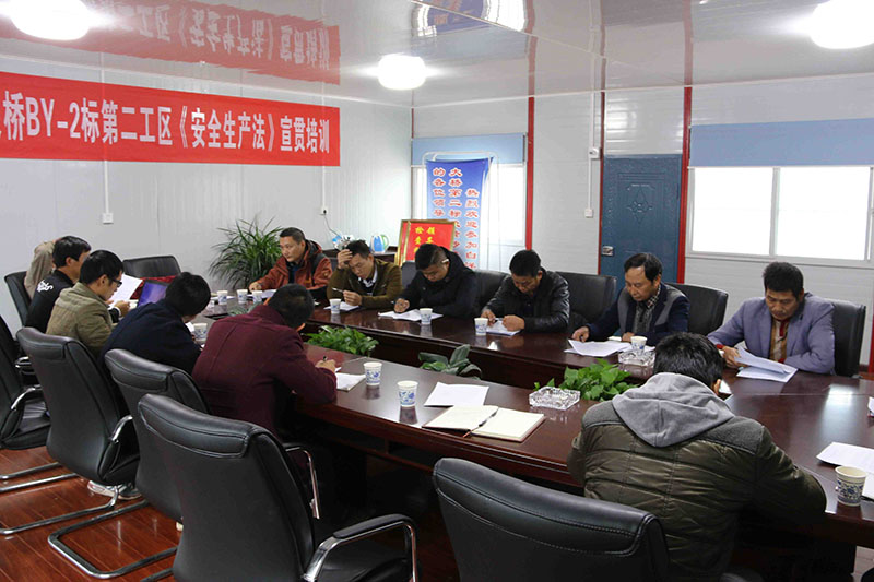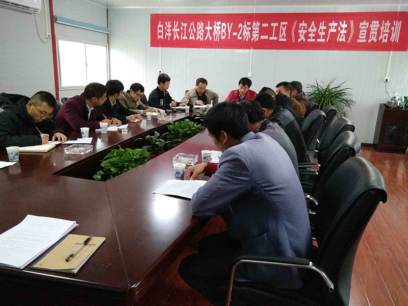 为落实路桥集团对白洋长江公路大桥第二标(以下称白洋二标)安全管理工作提出的相关要求,做好进场管理人员和作业班组的安全教育培训工作,在成立项目部安全生产领导小组之后,于10月30日开展了《安全生产法》的宣贯培训。培训会由安全生产领导小组副组长唐国良主持,驻地办安全专监周永华、项目部安全总监刘超宁、工区管理人员、已进场施工队伍负责人及其专职安全员参加了培训会。