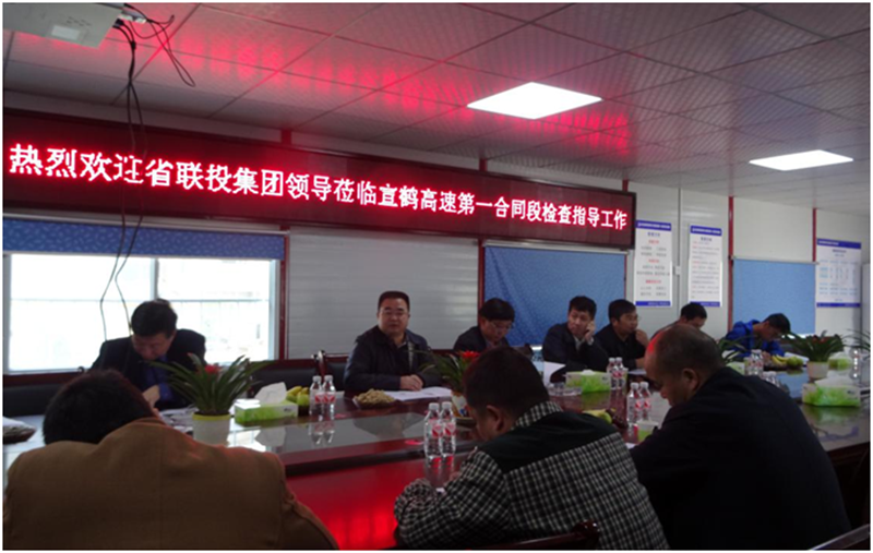 11月2日上午,联投集团副总经理汪继明、监事会主席牟秉夔、湖北宣鹤高速公路有限公司经理胡绍东一行六人到宣鹤高速第一合同段进行党建工作调研检查。