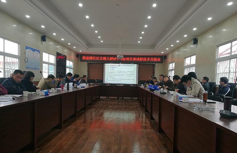为了棋盘洲长江公路大桥QPZ-2标项目首建工程暨试桩工程顺利实施,11月15日,棋盘洲项目部组织召开试桩技术交底会议。业主单位、监理单位、中心实验室、项目领导班子及各部室主要负责人约40人参加会议,项目总工周乐木主持。