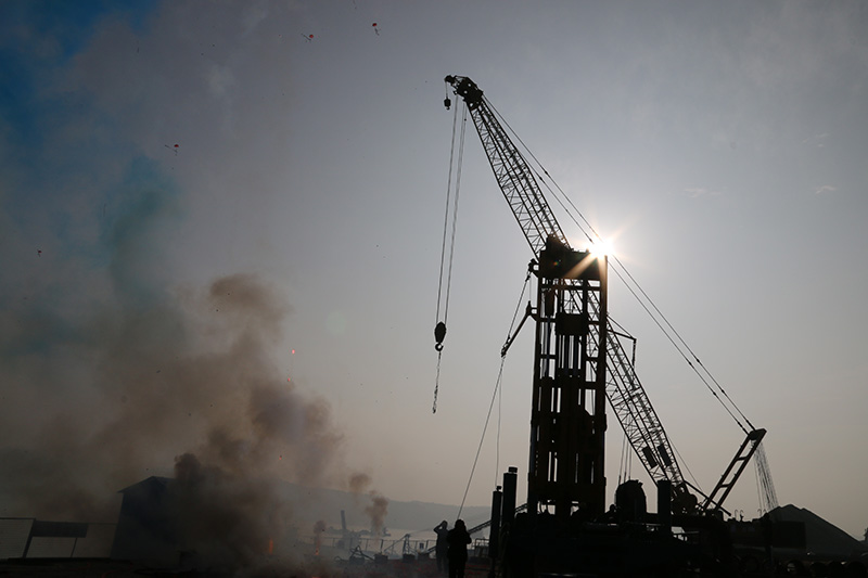 11月10日8时58分,伴随着烟花和鞭炮声的响起,白洋长江公路大桥第二标段主桥墩 2#主塔桩基正式开钻,标志着白洋长江公路大桥第二标段湖北路桥项目主桥钻孔桩施工正式拉开序幕。