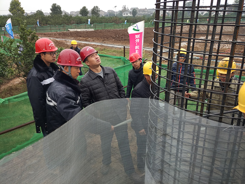 项目经理朱红明现场检查引桥桩基下钢筋笼