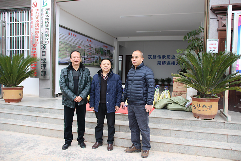 "老莫,春节要到了,你们还坚守在项目部工作,你们辛苦了,今天给你们带了点米、面、油等年货,向你们致以节日问候,并提前给你们宣鹤一标项目部拜年。"1月19日上午,在沙道沟宣鹤一标项目部,恩施州高路办征迁协调科科长陈文虎握着项目经理莫轻文的手,为项目部送去了恩施州州委、州政府对项目部工作人员的关心和问候。