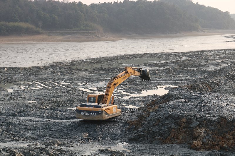 生态鱼庄的湖区抽水清淤工作,因湖区面积较大(约14万㎡),且淤泥较深,需修筑一条临时便道,用于运输位于湖中心的淤泥。目前正在进行的是拟建便道范围内的清淤,为接下来的大面积清淤工作做好充分准备。