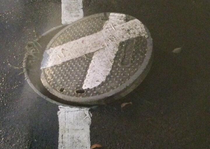 4月8日晚7点半左右,通过巡查了解到,花城家园幸福大街主干道路面滞水严重,由于暴雨过急,地下排水管无法迅速将区域雨水排出,造成部分雨水井盖被水压顶起,偏出井口,严重影响了附近居民的人身安全。花山市政项目排水巡查组迅速疏导交通,对偏出的雨水井盖进行恢复,以保证了附近居民出行的安全。
