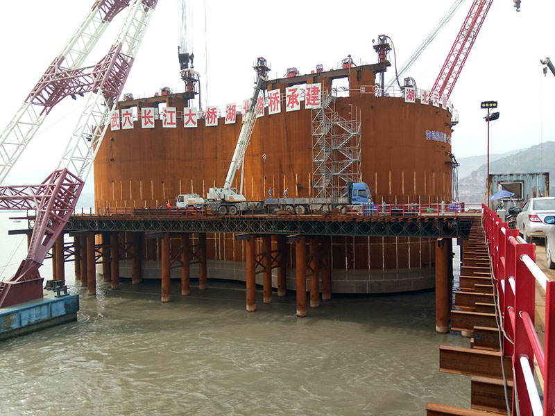 围堰浮运到位并经过初步定位和精确定位后,插打12根长60m的定位钢护筒,然后在护筒顶部安装围堰提升承重梁及千斤顶提升系统,经调适完成后将围堰整体提升出水面进行助浮仓底板割除。但是三月份连续的大雨、大风天气对定位钢护筒的插打和接高造成了较大的影响,而且多个施工队伍协同作业,施工界面交叉,管理难度大,施工工期目标的实现形势严峻。