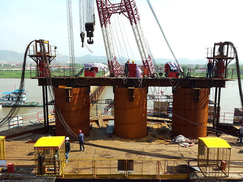 为了尽早实现既定的工期目标,项目部对施工现场进行重新安排和部署,增加一台400t浮吊同步进行定位钢护筒施工。同时,增派人手,加强施工现场的管控,充分利用大雨、大风间歇时间,抓紧施工,调动各方面力量,白天、晚上连续作业,加班加点克服困难。