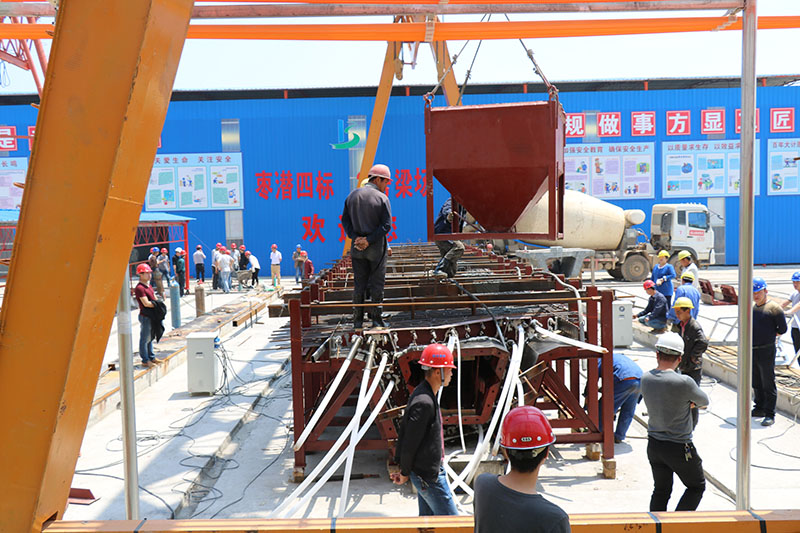 为了使箱梁预制工作有一个良好的开端,项目领导班子对首片箱梁的预制高度重视,项目班子每天紧盯现场,深入施工一线,要求预制粱厂负责人严把原材料质量关、施工工艺关、设备调试检测关,做到安全、文明、规范施工。对施工方案不断优化,就钢筋绑扎、模板安装、混凝土、机械设备和人员配置等做了充分准备工作,加强了现场安全技术交底和质量管理工作,现场试验人员全程跟踪控制砼坍落度,技术人员严控砼振捣质量,防止出现漏振、过振现象。