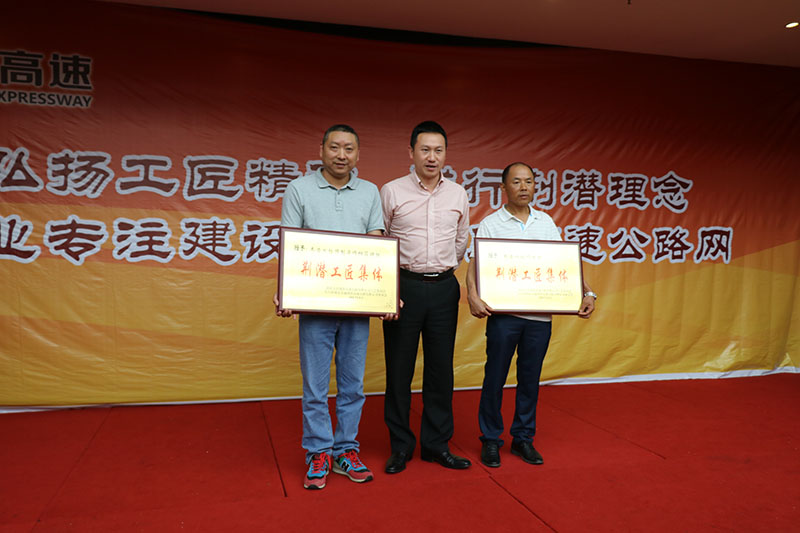 2017年5月3日,在荆潜指挥部"弘扬工匠精神 践行荆潜理念"劳动竞赛表彰大会上,湖北路桥枣潜四标项目经理部荣获"荆潜工匠集体"、"荆潜工匠场(站)"、"荆潜工匠个人(易磊、周富)"及宣传展板创作二等奖等荣誉称号,蹇元平指挥长在表彰大会上对枣潜四标所做的工作给予了高度平价和充分肯定。