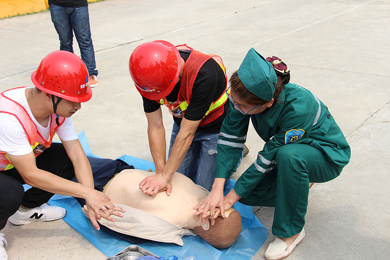 演练结束后,为了让项目人员掌握基本的应急急救医疗知识,项目部特别邀请了枝江市董市镇医院急救科的医生和护士为项目人员演示、讲解心肺复苏、人工呼吸等急救措施,并安排项目部领导、工程监理、安全员和现场施工员进行实际操作指导。