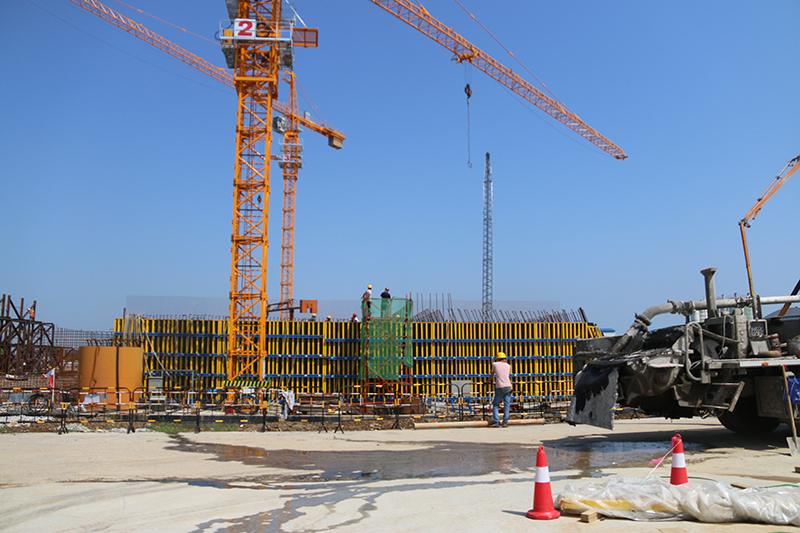 此次施工难度大,技术含量高。为加快施工进度,项目建设者合理安排施工,保证这项控制性工程的顺利浇筑。散索鞍支墩基础第一次浇筑,标志着南锚碇工序转换进入下一阶段,为白洋大桥后续锚碇混凝土浇筑施工奠定了坚实的基础。