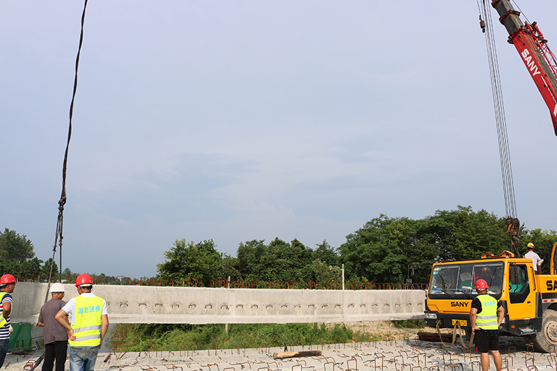 2017年7月5日下午6点,伴随着震耳欲聋的鞭炮声,蕲春赤龙湖项目金牛洞桥完成了最后一片预制梁的吊装。至此,迎宾大道A段已全线贯通。