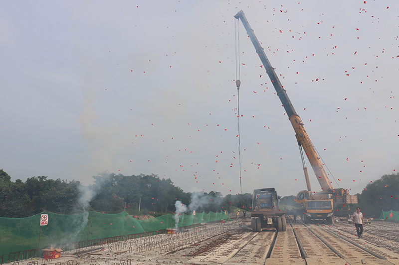 蕲春的6月阴雨连绵,打乱了刚刚实施的 "大战100天"的施工节奏,吊梁完成后的一声声鞭炮声穿云裂石,仿佛给项目部全体员工打了一剂强心针。看到大家脸上洋溢着欣慰的笑容,接下来路面施工和桥面混凝土浇筑定能再创佳绩!此次能如期完成吊梁的重大施工节点,离不开业主、监理及各界的大力支持和项目部全体人员几个月的精心准备。在得知项目部今天将完成最后一片梁的吊装后,业主单位、监理单位、各协作队伍负责人、附近村庄的村委会等都纷纷送来爆竹和烟花,到现场观摩并祝贺。