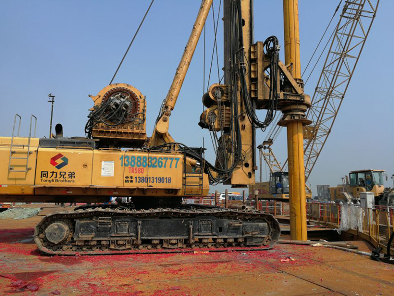 武穴长江公路大桥15#主墩桩基共38根,桩径3.0m,桩长84m,孔深110.5m,最大入岩深度65m,属超大、超深、超长嵌岩桩,作为主塔墩桩基施工质量要求高,施工难度大。针对这一情况,项目部采取了一系列应对措施,选用了目前世界上最大的旋挖钻机――中车TR580D,为保证施工效率,采用3m钻头一次性成孔。这一举措将创造旋挖钻机一次性成孔直径和入岩深度两项国内施工记录。