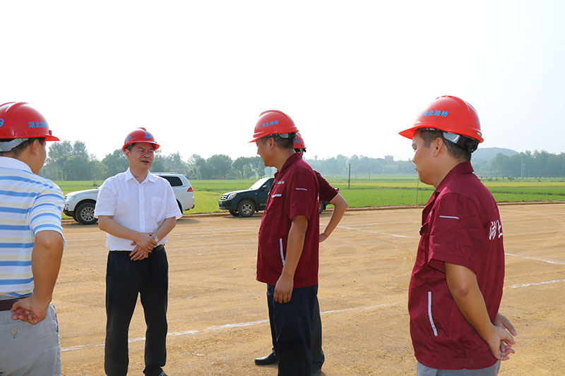 8月15日上午,钟祥市市委书记林长洲、副市长王小庆、交通局局长蒋方贵一行在钟祥市协调指挥部副局长刘承东的带领下,到枣潜四标项目部施工现场开展工作调研,枣潜四标项目经理郝财国及项目班子成员陪同。