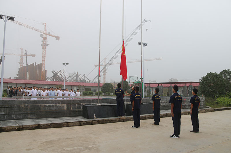 清晨7:00整,伴随着激昂、豪迈的出旗音乐《歌唱祖国》,四名优秀青年员工组成的护旗方阵手托国旗齐步走来,攒动的人群立刻安静下来。当雄壮有力的《义勇军进行曲》响起,鲜艳的五星红旗、嘹亮的国歌声和所有人脸上肃穆的神情,都表达着我们对伟大祖国的美好祝愿。升旗仪式后,举行了四季度劳动竞赛的动员大会。优秀施工队代表对劳动竞赛献言献策,并表态将采取加大劳动力投入、提高工作效率等各项措施,以确保劳动竞赛目标的顺利完成。最后,白洋二标项目部常务副经理张清利同志对项目全体员工、施工队及其家属表达节日的问候与祝福。他指出:项目部举行升旗仪式意义非凡,是让大家立足岗位,干好本职工作,用实际行动表达自己的爱国热情;并希望以本次劳动竞赛活动为契机,以竞创优,以赛促效,在完成全年生产任务的同时,锻炼出一批优秀的施工队伍和素质过硬的管理团队。