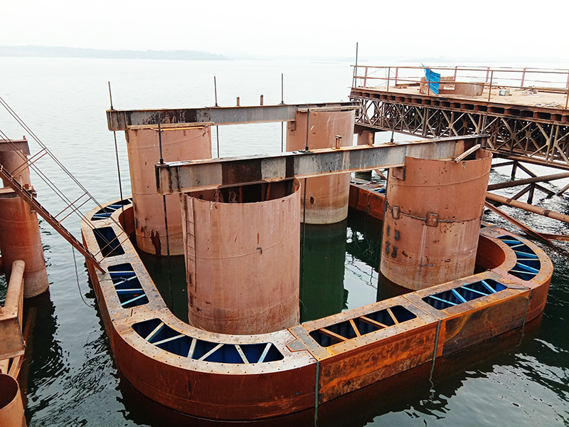 图:双壁吊箱围堰套箱下放完毕