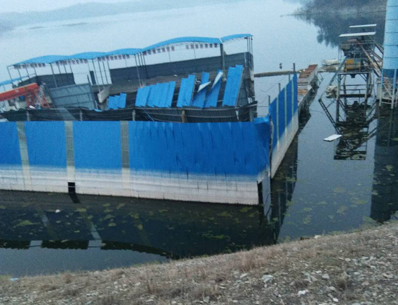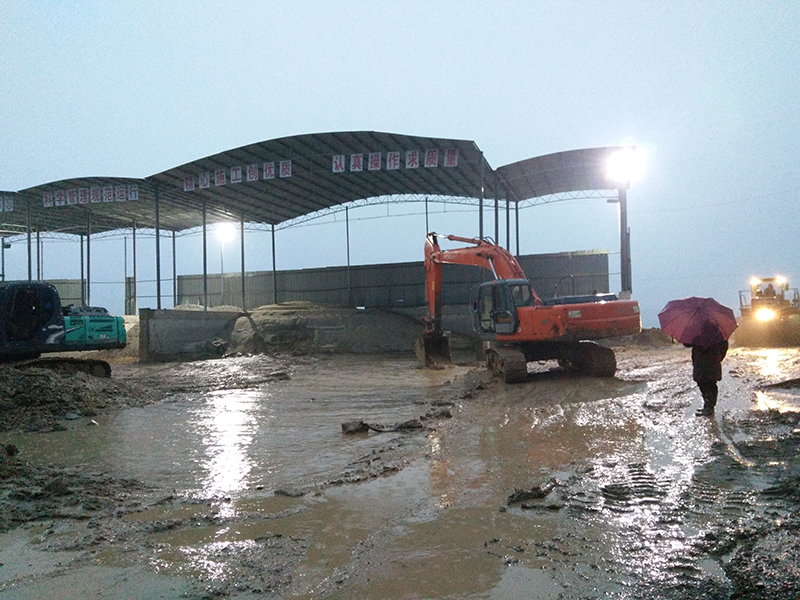 项目全体员工与工人们一起,穿着雨衣,抡起铁锹,垒土,筑坝,还有那扬着长臂的吊车,挥舞着钢铁大手的挖掘机。我们心存幻想,我们心有不甘,明明知道斗不过天,明明知道今天肯定会被淹。被淹的不是拌合站,那是我们辛勤苦干大半年的心血汗水,那是我们燃烧正旺、热情似火的激情。我们不服,即使在最后一刻,我们还要挣扎,也许今晚是涨水最后一天,也许这是黎明前的黑暗;我们不罢休,哪怕临近绝望,我们仍抱有希望,我们要做胜利者,要做那个在最后一击前,还做着努力的人!