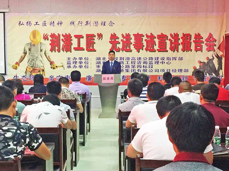 为深入贯彻党的十九大精神, "弘扬工匠精神,践行新发展理念", 5月10日上午,由荆潜指挥部主办、湖北路桥枣潜四标项目承办的首站"荆潜工匠"先进事迹巡回宣讲报告会在枣潜四标项目部顺利举办。