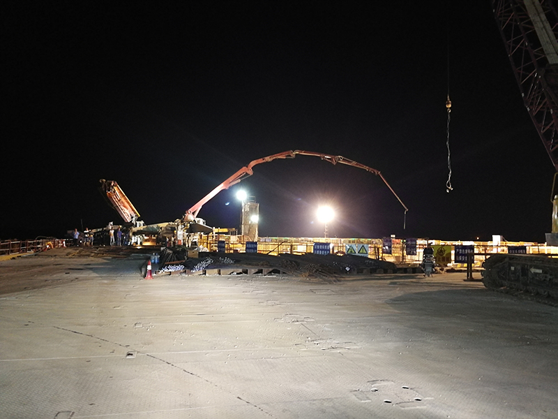 8月10日,经过34个小时的连续奋战,湖北路桥承建的武穴长江大桥15号主塔墩承台最后一次大体积混凝土浇筑顺利完成,至此武穴长江公路大桥15#主墩承台主体完工,正式迈入塔柱施工阶段。