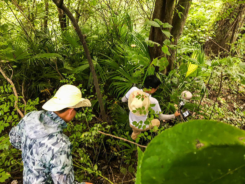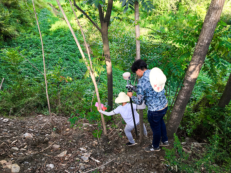 图:测量放样人员在深山密林中勘察定位
