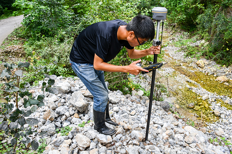 时下正值酷暑。每天清晨还未到8点,温度就已攀升至30℃以上,等到10点左右,温度更是接近于40℃,高温一直持续到天黑,一天的工作结束,放样人员早已将衣襟汗湿了几遍。加上身处荆棘密林之中、放样人手不足、设备接收信号较差,种种困难使得红线放样工作推进举步维艰,是否能够在规定时限内完成既定的目标任务成了未知数。
