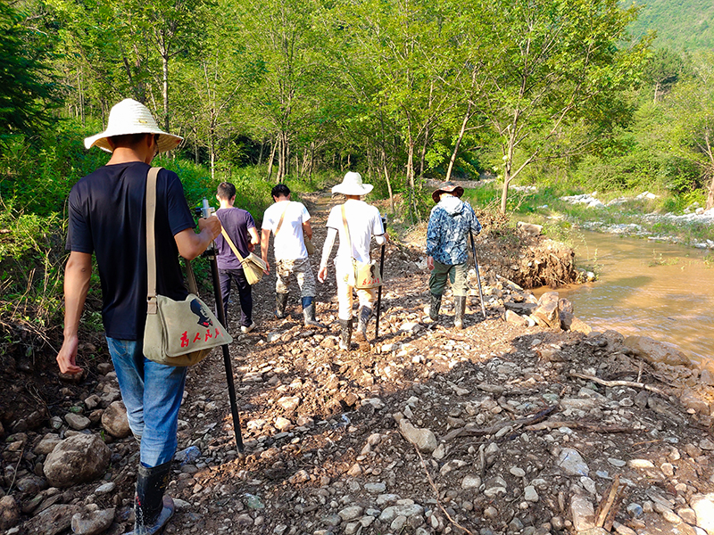 为了更快地完成测量工作,为项目前期工作争取充足的准备时间。7月30日,项目部领导班子主动加入放样工作中,项目经理、合同部长、工程技术部长、质量管理部长等同测量队的员工们一道赶赴施工一线,一起协助红线放样工作,共同感受前线测量人员的艰辛不易。无论是在深山密林还是在急流险滩,项目部全体放样人员共同进退,齐心协力,在相互鼓舞之中,所有人都咬紧牙关,全身心地投入到自己手头的工作当中去。