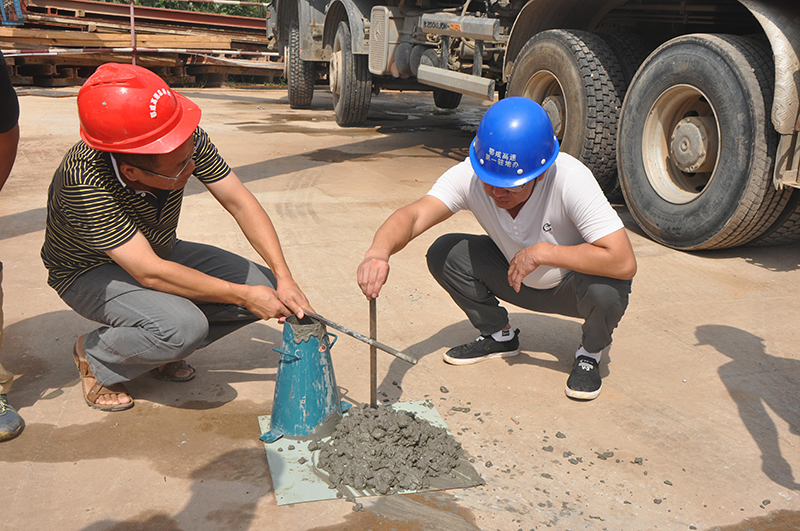 图:现场技术人员对浇筑的混凝土进行质量检查