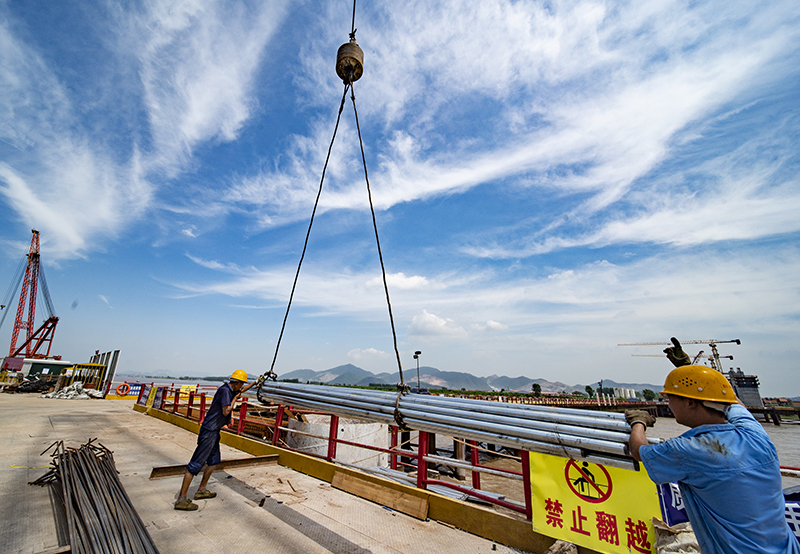 因为要赶在长江枯水季节完成关键工序的施工,钢筋加工班组全员放弃双节休假,实行了“三班倒”的作息时间,一刻也不耽误地抢抓工期。