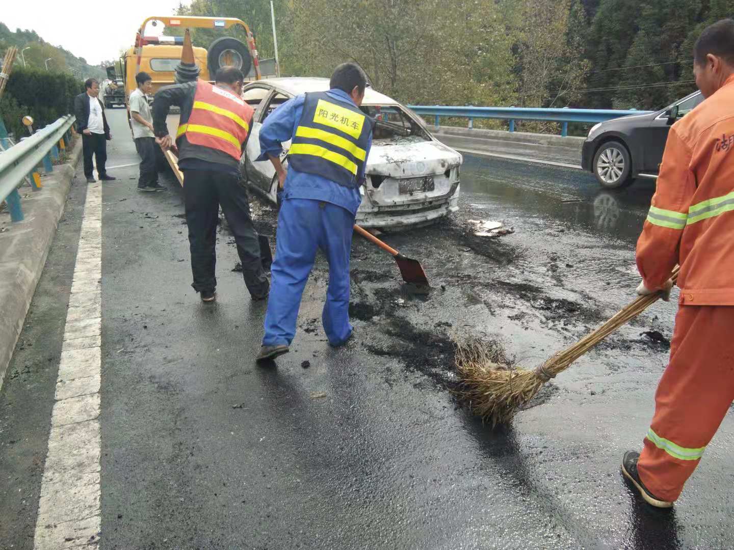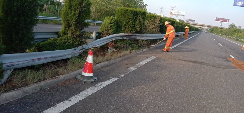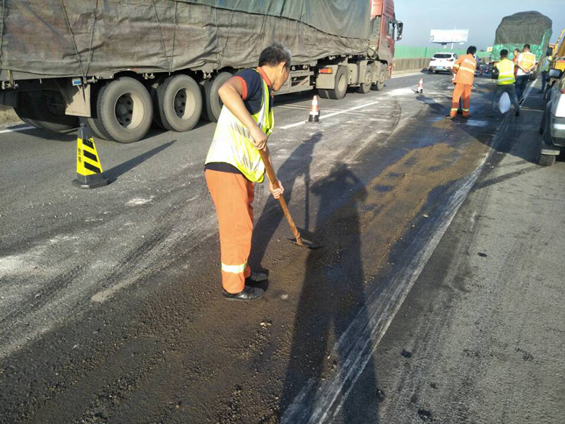 国庆期间,联投项目养护人紧绷安全这根弦,把公众安全出行作为首要任务、第一要务。10月1日早上10:00点,和左高速鄂州往武汉K10附近发生交通事故,联投项目养护人员根据经验,带上锥桶、铁锹、扫把、沙,并迅速赶往事故现场。到达现场后,迅速摆放警示牌,对清障区域打围,分工合作,先将路面上由于车祸泄露的大片油渍用沙子覆盖,随后用铁锹铲除,恢复路面清洁,防止过往车辆的打滑,保证了司乘人员的安全。