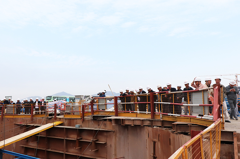图:130多名老党员干部在武穴桥栈桥上参观