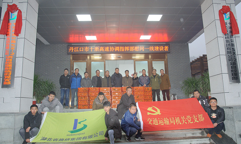 张健代表丹江口市交通运输局、十淅高速丹江口市协调指挥部为湖北路桥十淅高速二标项目部送来了60余箱刚刚采摘自丹江口库区北岸扶贫户家中自产的柑橘,并对所有奋战在施工一线的路桥员工表达深深地敬意和衷心的感谢!