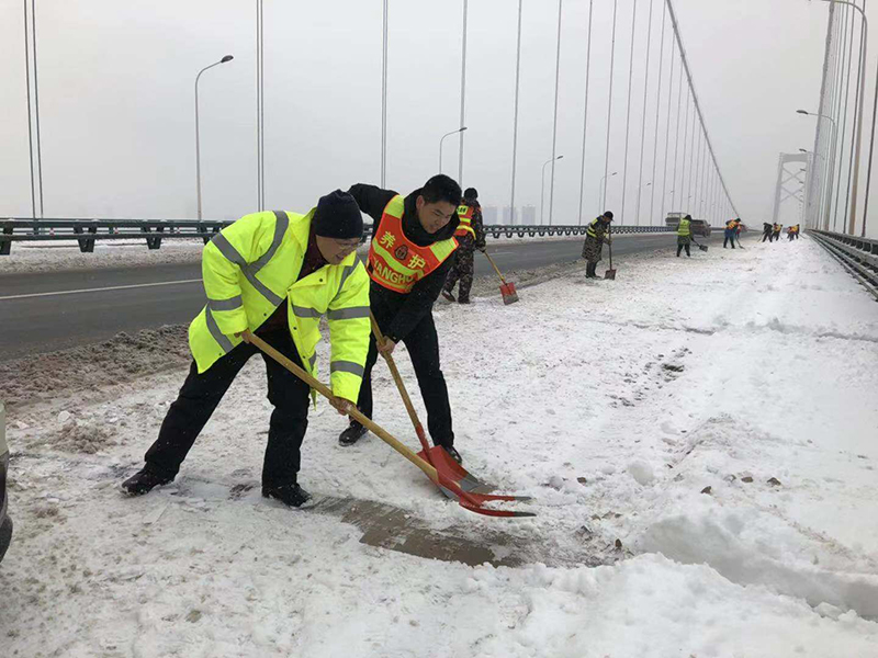 图:项目领导及业主奋战一线 带队铲雪除冰