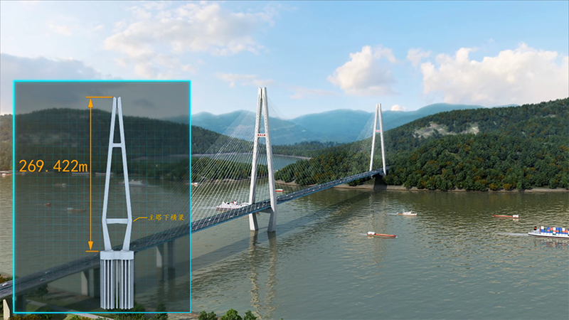 武穴长江大桥主塔高达269.42米,是目前湖北境内最高的长江大桥塔柱。下横梁(如下图所示)是连接两塔柱的一个整体,是联系左右塔柱、承载桥梁上部结构荷载的关键部位,本次浇筑是主塔施工的关键节点。