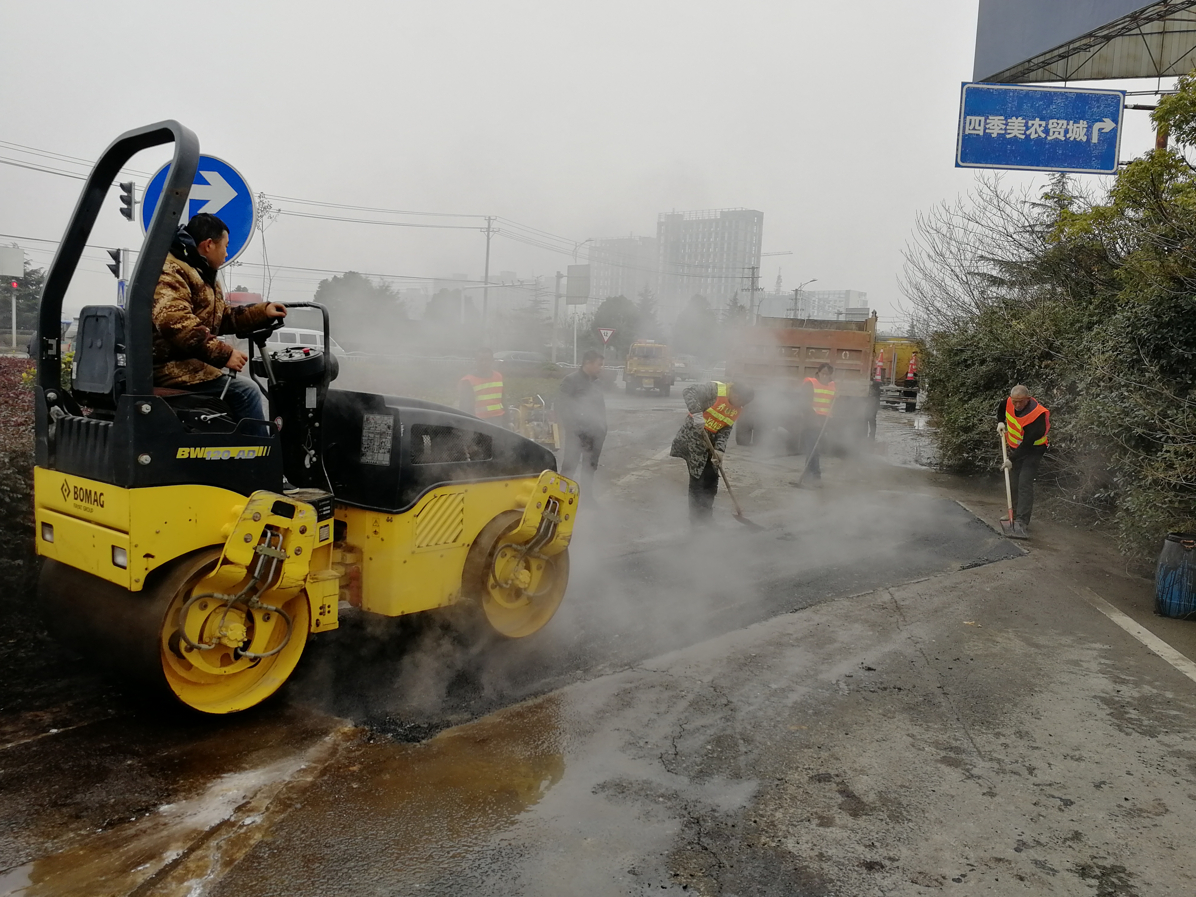 由于2018年12月的连续雨雪天气加速了路面老化,各路段出现不同程度的坑槽病害,项目在12月最后一场除雪战役完美收官后,立即组织开展“春运”保卫战。此次保卫战主要分为三步走,一是下好先手棋,抢在“春运”返乡大潮之前提早安排部署路面排查修复工作。1月2日项目便全面开展巡检工作,加大对路基、路面、桥梁和沿线设施的养护巡查力度,全面排查道路安全隐患,尤其是桥梁匝道等重点路段和部位,及早发现问题及早解决,确保在“春运”来临前完成各路段的修复工作。