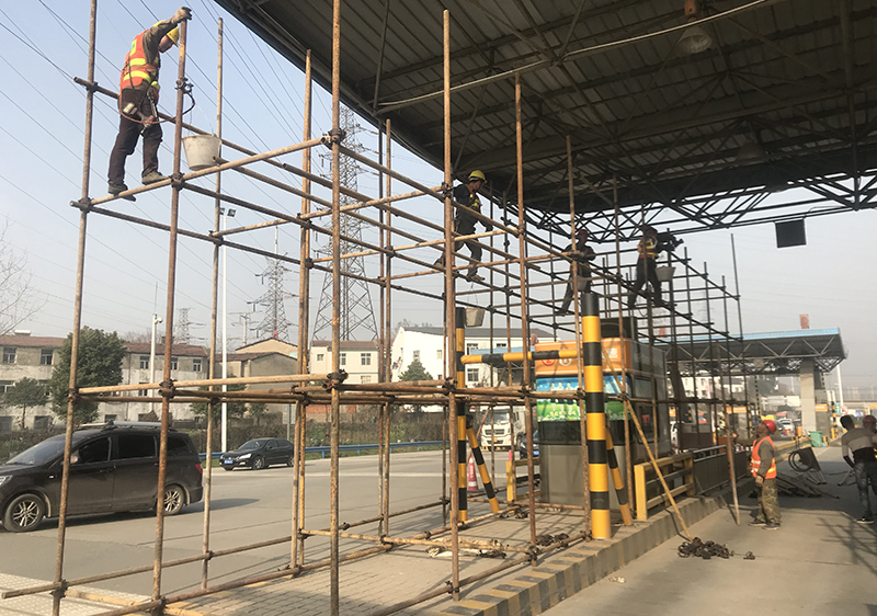 图:龚家岭收费站大棚维修搭设脚手架