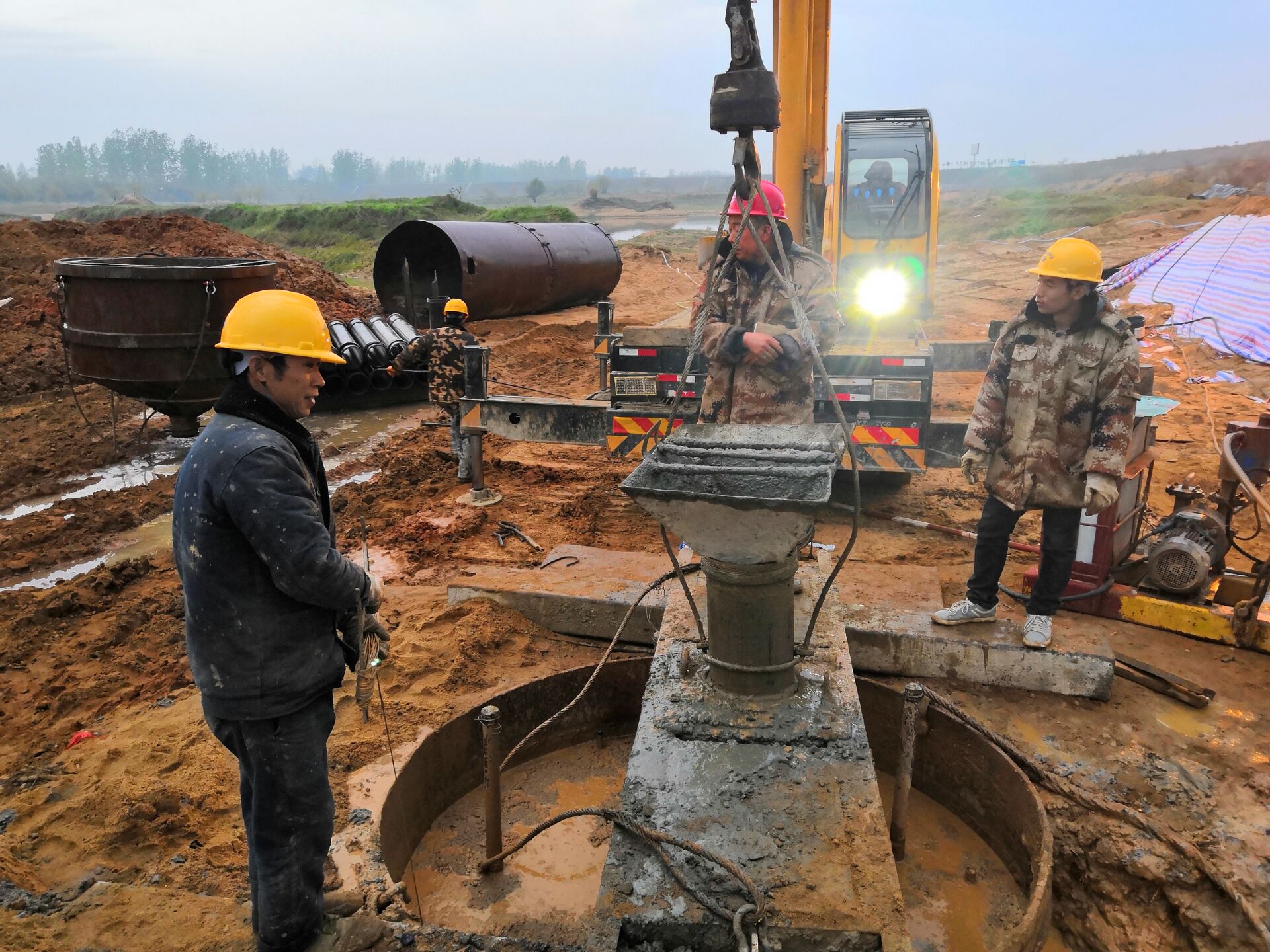 本标段桩基共668根,此次成功浇筑的首根桩基是举水河大桥1号墩1-4桩基,设计桩长40.0米,设计桩径2.0米,共计浇筑126m³C30水下混凝土。举水河大桥桥址区地质复杂,0.5-10米均为不同砂层,松散砂层厚度达8米,地下水位高,护筒不易施工、易塌孔,需在汛期来临前完成河道内桩基施工。