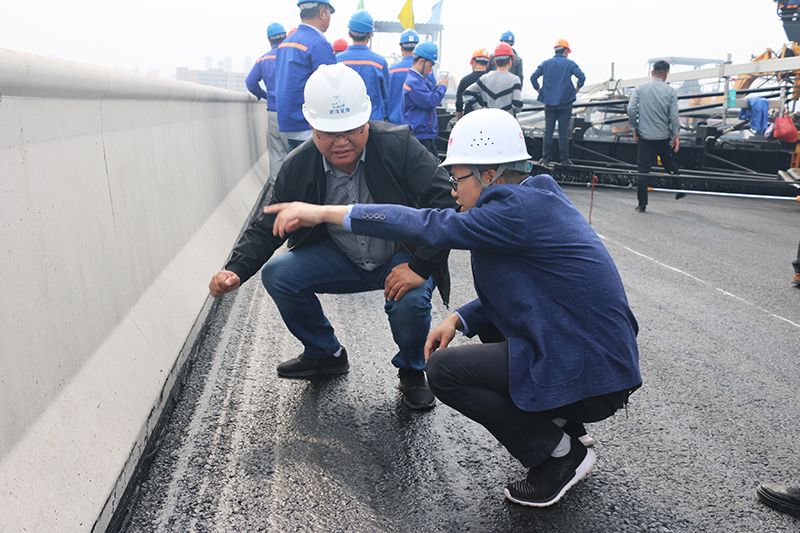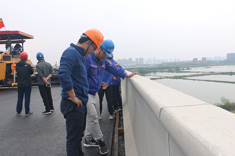 4月15日上午,中铁大桥局青山长江大桥项目班子成员及各部室负责人、中心试验室及驻地办领导一行赴湖北路桥南四环项目观摩交流,项目常务副经理徐其波陪同。