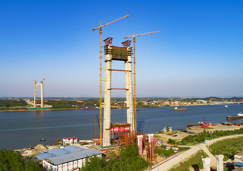 4月26日凌晨5时许,经过7个小时的鏖战,由湖北省路桥集团有限公司承建的棋盘洲长江大桥顺利完成南主塔上横梁全部混凝土浇筑。自此,大桥建设正式进入主塔上部结构施工,猫道架设、主缆安装等施工将依次铺开,2020年建成通车指日可待。