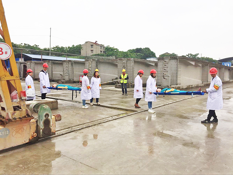 接到救援命令后,各小组迅速反应,有序开展各自分工救援工作。后勤保障组第一时间将应急抢险与救援所需的设施设备、应急物资等送达抢险现场;综合协调组拉起了安全警戒线,封锁事故现场,紧急疏散围观群众,拨打紧急救援电话,并对现场拍照取证;抢险救援组现场研究处置方案后,决定操作另一台龙门吊清移压在伤者腿部的模板,保障伤者身体内的血液流通顺畅,及时解救出伤员;医疗救护组对伤员进行了现场医疗检查后,对砸伤伤者进行消毒包扎,对触电伤者实施了心肺复苏抢救;工地附近的鄂州市葛店开发区医院人员赶到“事故”现场将“伤者”送往医院;综合协调组随即启动事故调查程序;最后善后处理组进场恢复现场用电,撤除安全警戒,恢复了正常的生产秩序,结束了本次演练。