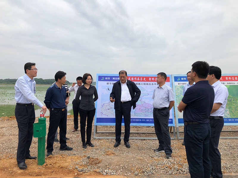5月21日上午,鄂州市市委书记王立赶赴梁子湖,调研湖北省路桥集团有限公司承建的梁子湖环湖通村(防汛)道路工程一标项目生产进度工作。