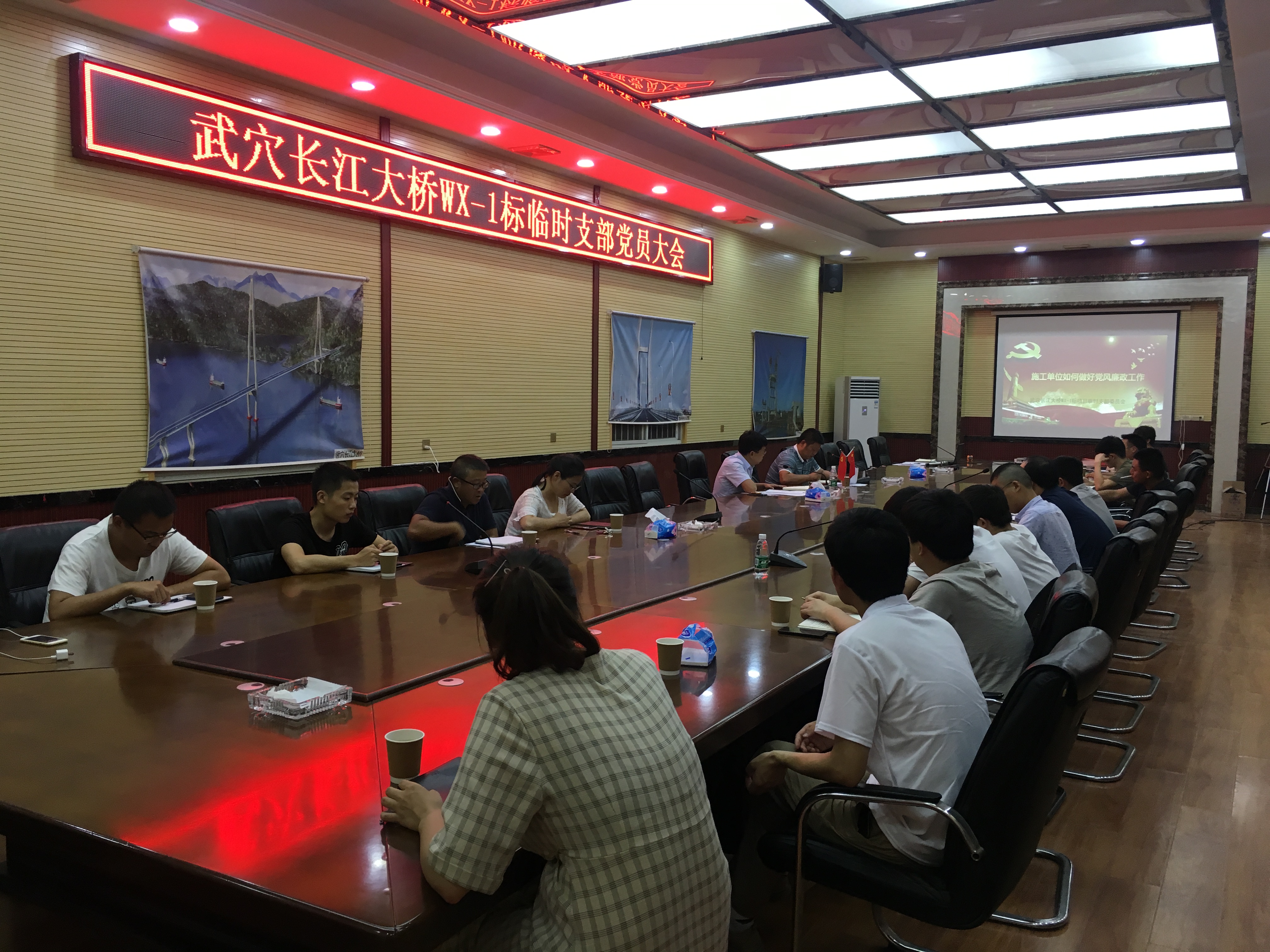 王冲指出,当前深入开展党风廉政建设和反腐败斗争,是关系到我们党生死存亡和事业成败的大事,也是我党加强执政能力建设、巩固执政地位的必然要求。在习总书记的领导下,全党上下狠抓贪污腐败,肃清党风党纪,力度之大、规模之广有目共睹。我们作为国企特大型施工项目,是国家和政府密切关注的对象,更应该积极树立廉政意识,严防贪污腐败,把好制度、监督、教育、惩处四道关口,把党风廉政建设和反腐斗争工作当做项目党建工作的长期任务来抓。