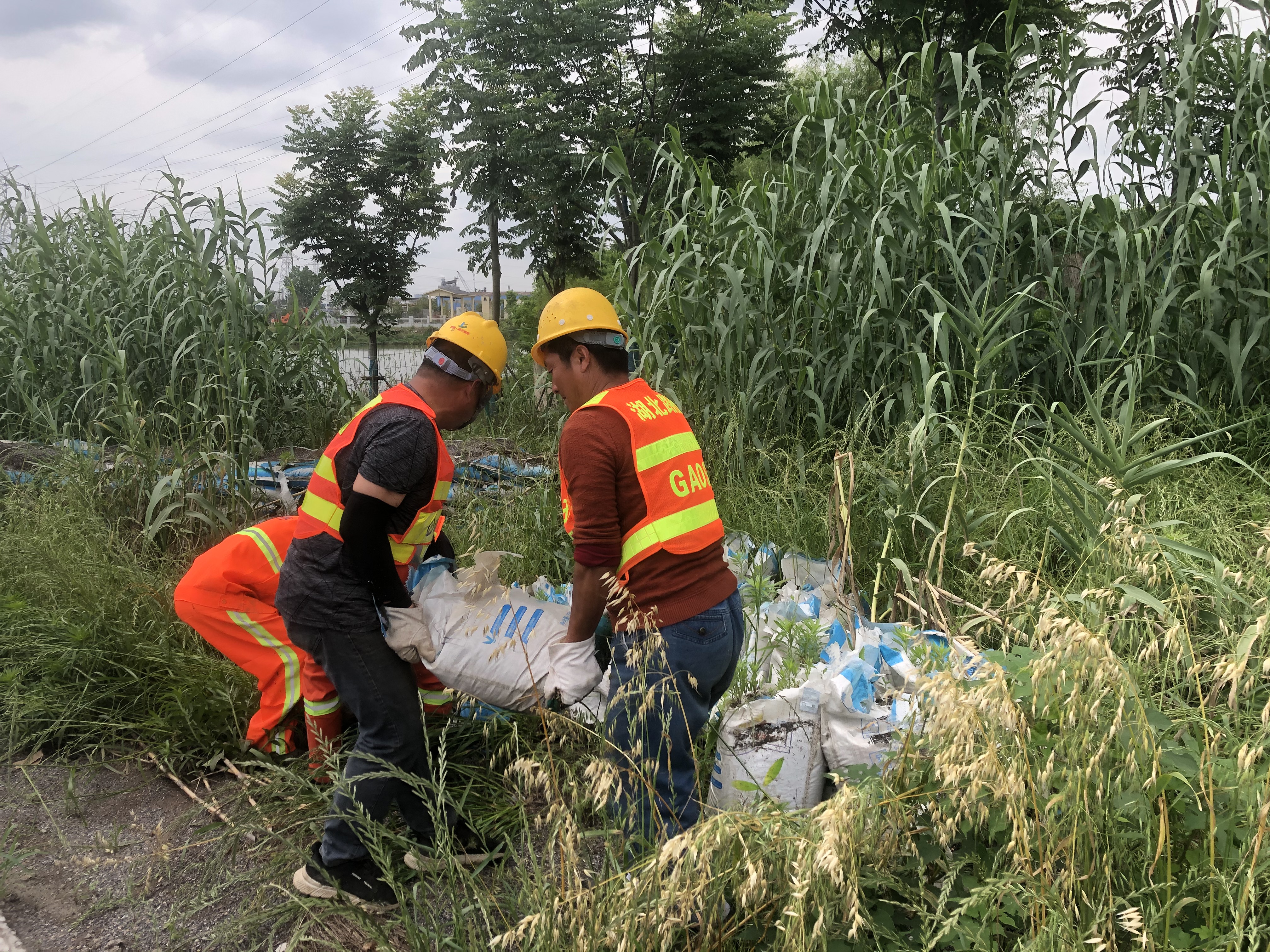 警戒保护组组织成员对左和向桩号K5+000至K5+200路段现场按照《公路养护安全作业规程》JTG H30-2015规范进行打围,并安排人员协助交警路政疏导交通,引导车辆安全通行,维持现场秩序。抢险救援组组织抢险人员有序进入现场,立即在左和向方家湾桥头路基段摆放沙袋,同时迅速打开抽水泵进行抽排,如实记录抽排时间;物资保障组动用现场资源及相关储备救援设备,为抢险队员提供救援物资。