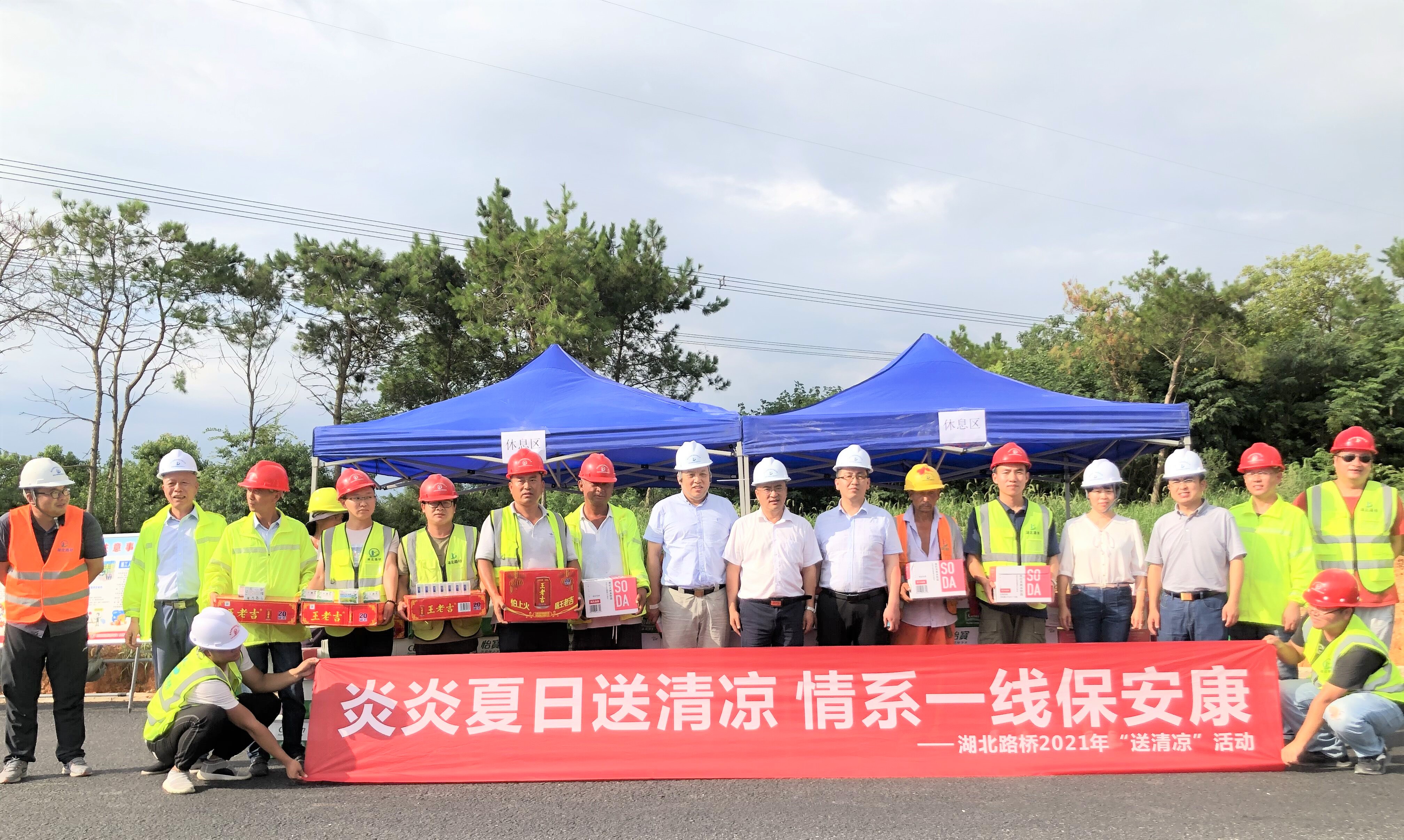 7月26日,建投集团党委委员、湖北路桥党委书记、执行董事丁峻一行到麻安东项目检查慰问,为奋战在一线的建设者送去防暑降温物品。